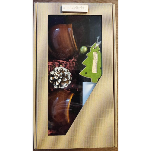 Zestaw świąteczny składający się z butelki austriackiego grzańca zrobionego ze styryjskiego Schilchera i dwóch ceramiczny kubków.